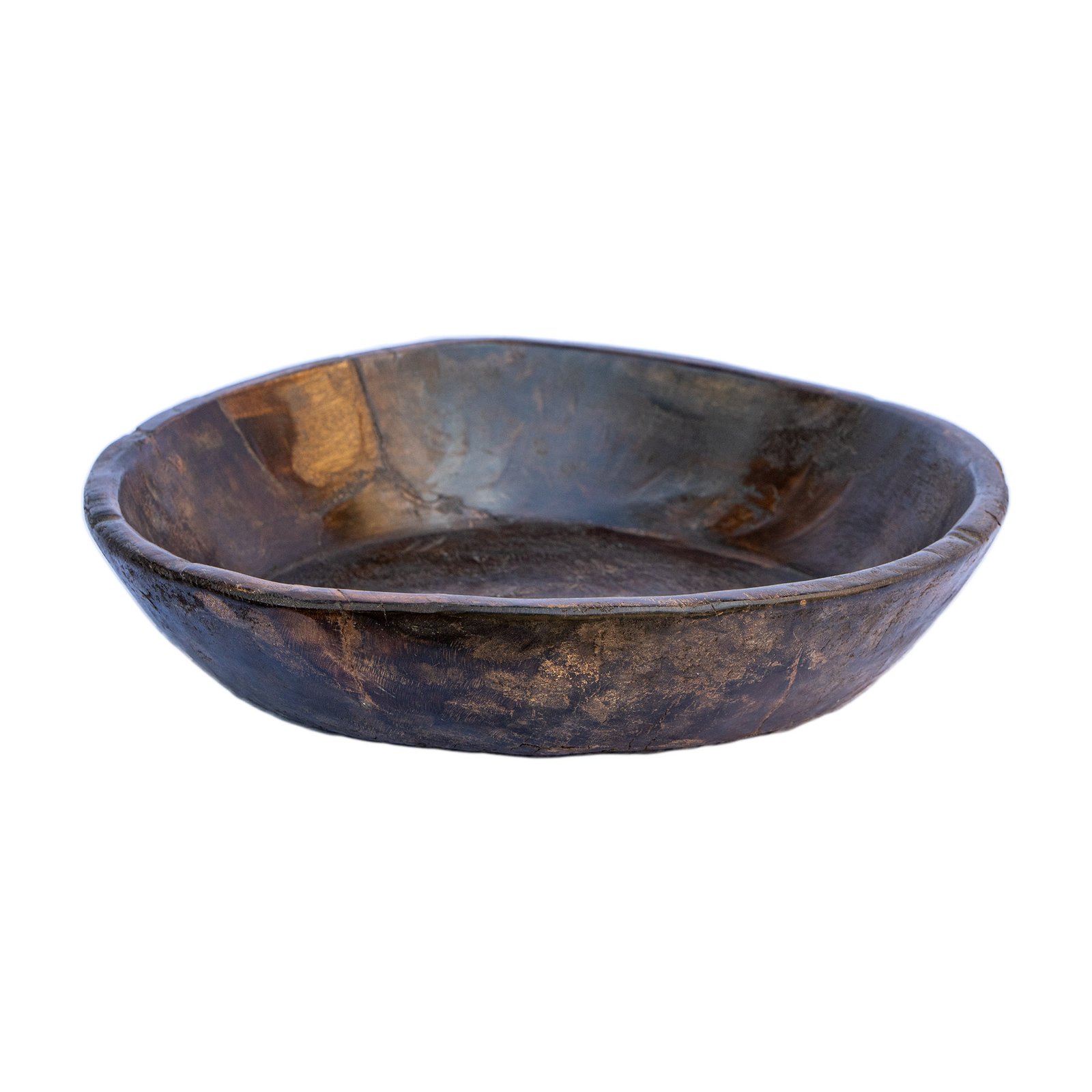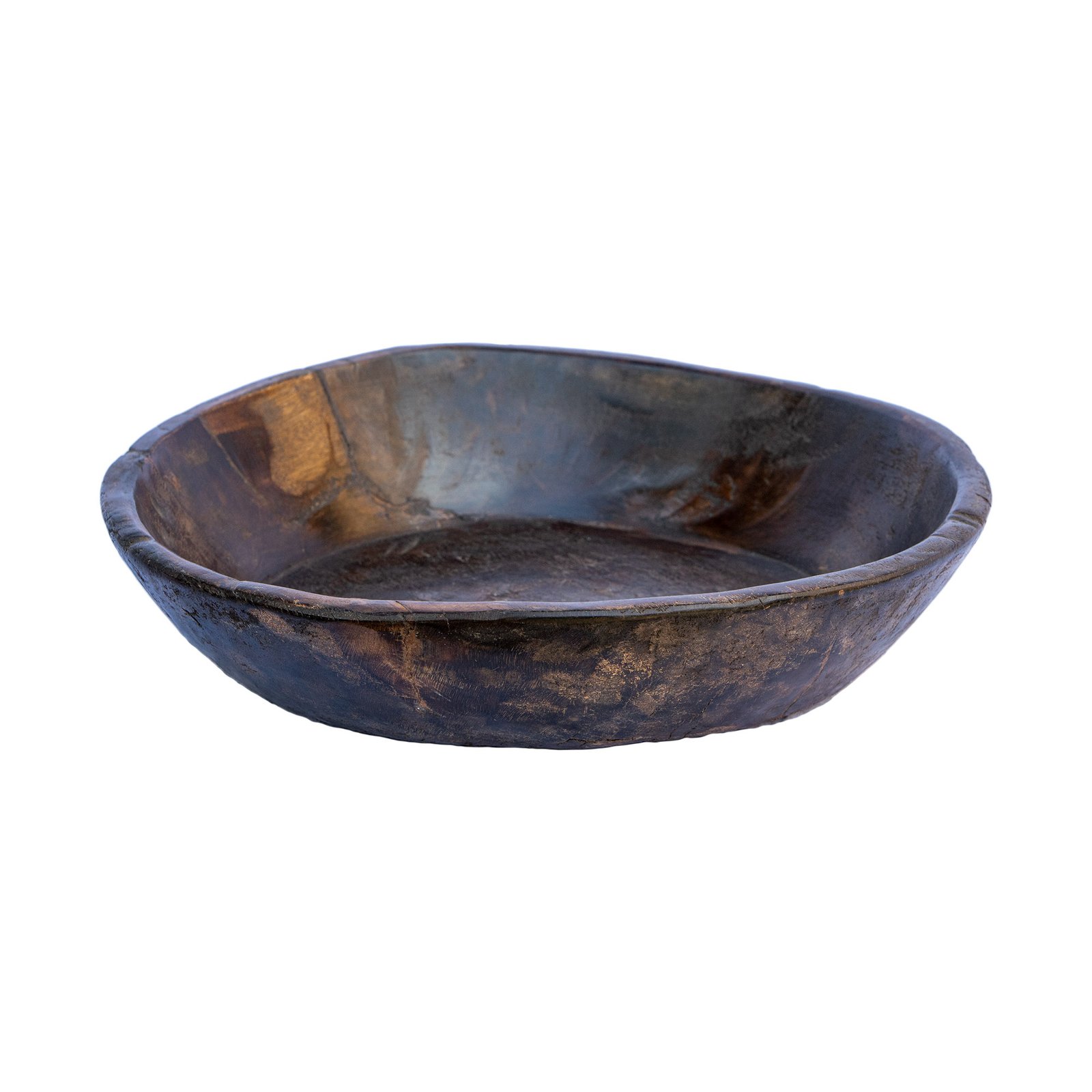 Chapati Holzschale, große, dunkle, runde bzw. teilweise ovale Schale, aus einem Stück Holz gearbeitet.