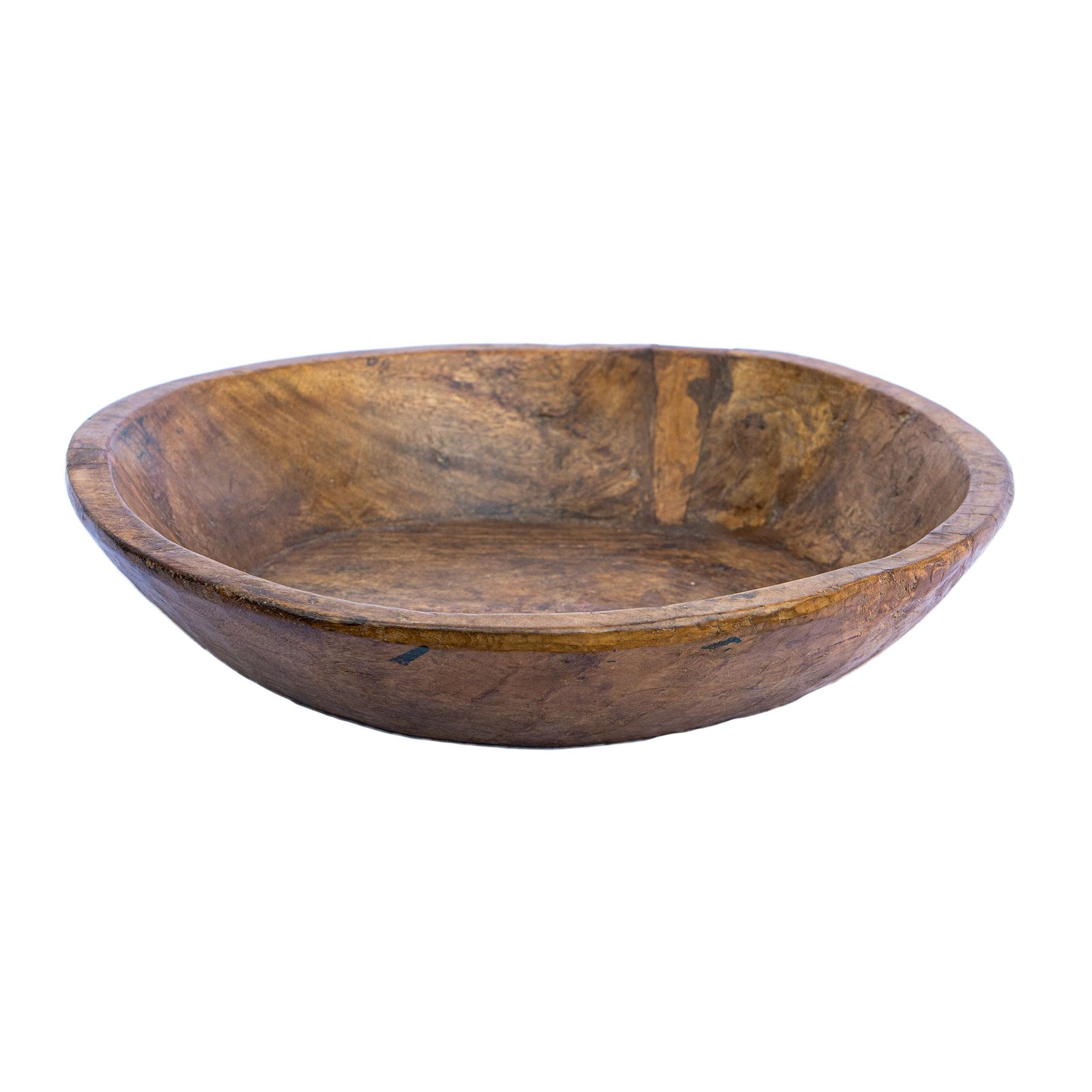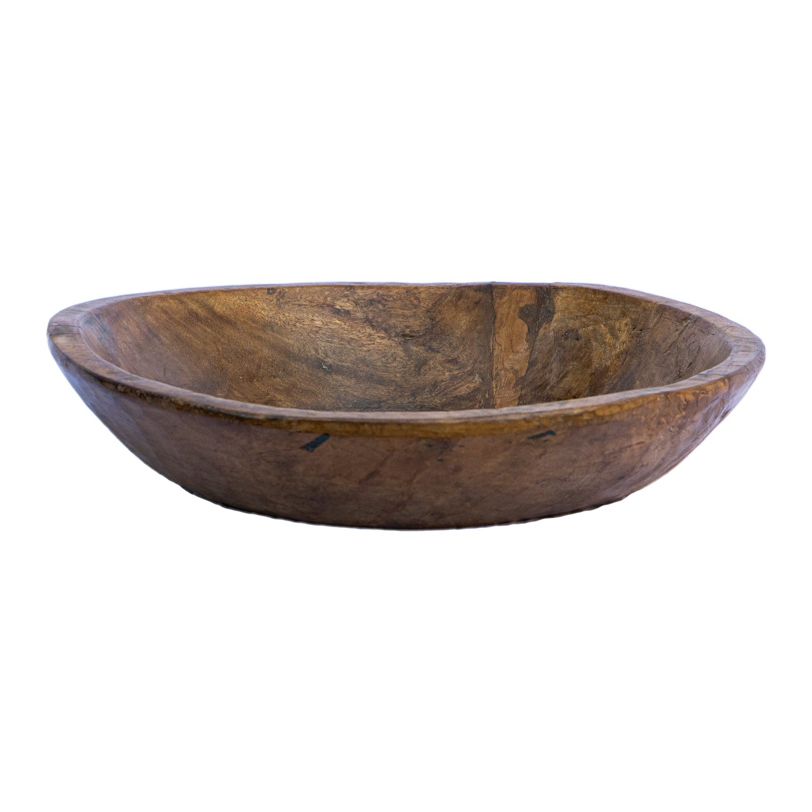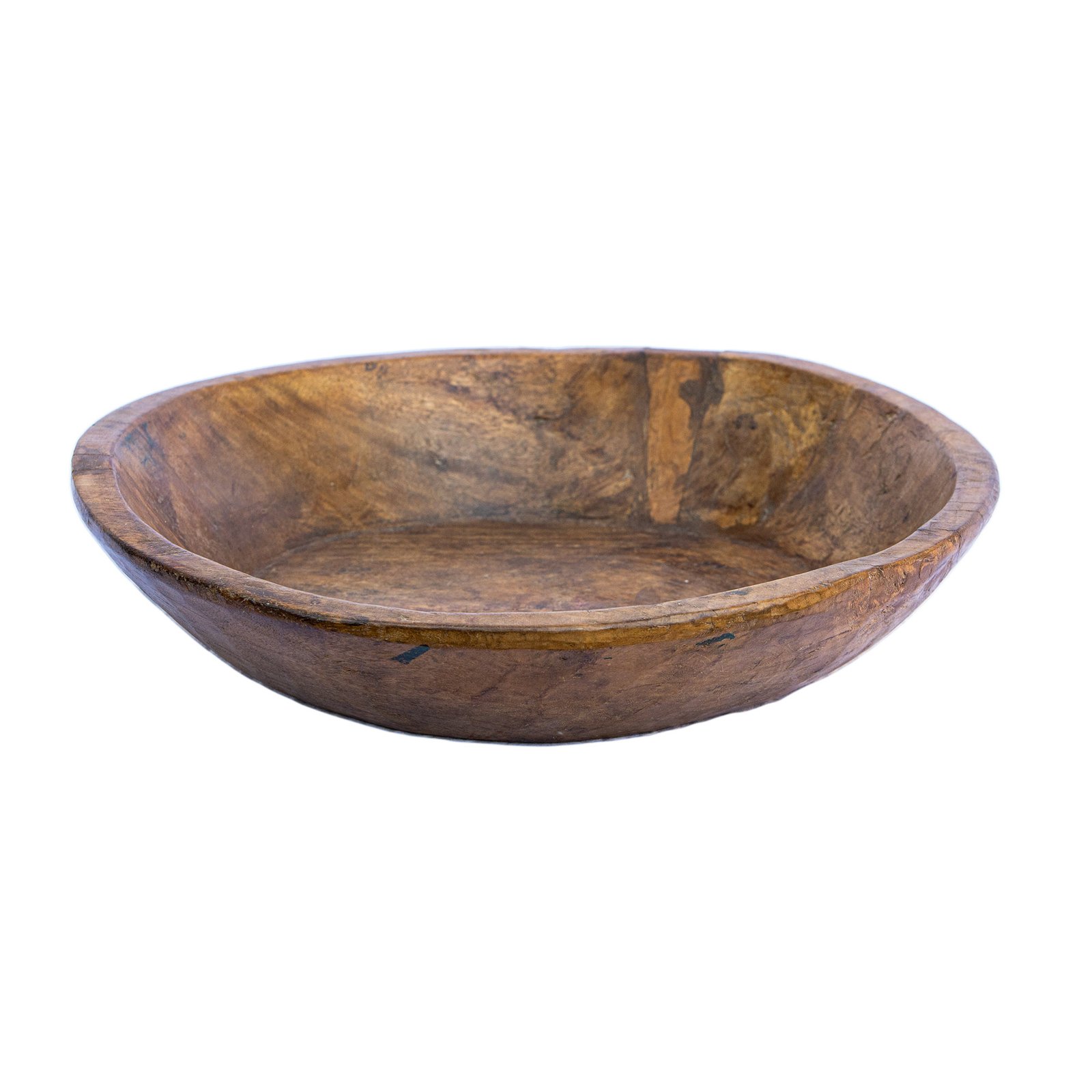 Chapati Holzschale, große, runde bzw. eher ovale Schale, aus einem Stück Holz gearbeitet.