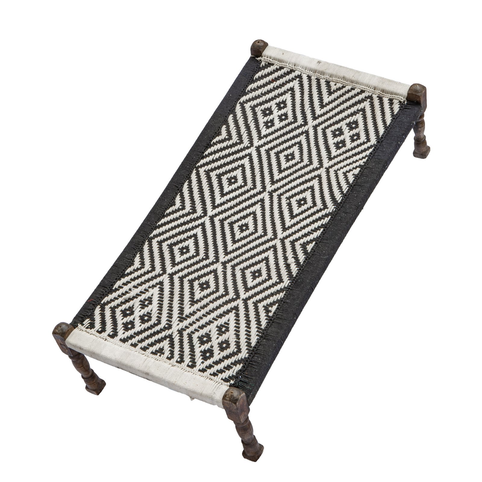 Bei diesem schönes Einzelstück handelt es sich um eine „moderne“ Bespannung über die gesamte Bettliegefläche. Ein Charpai mit „geschlossener“ Bespannung entspricht dadurch eher Betten oder Liegen, wie man sie z.B. in Europa kennt.