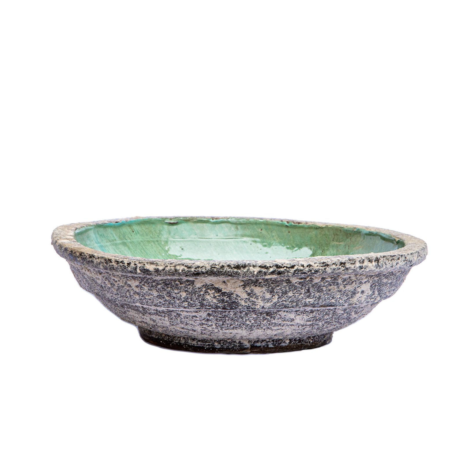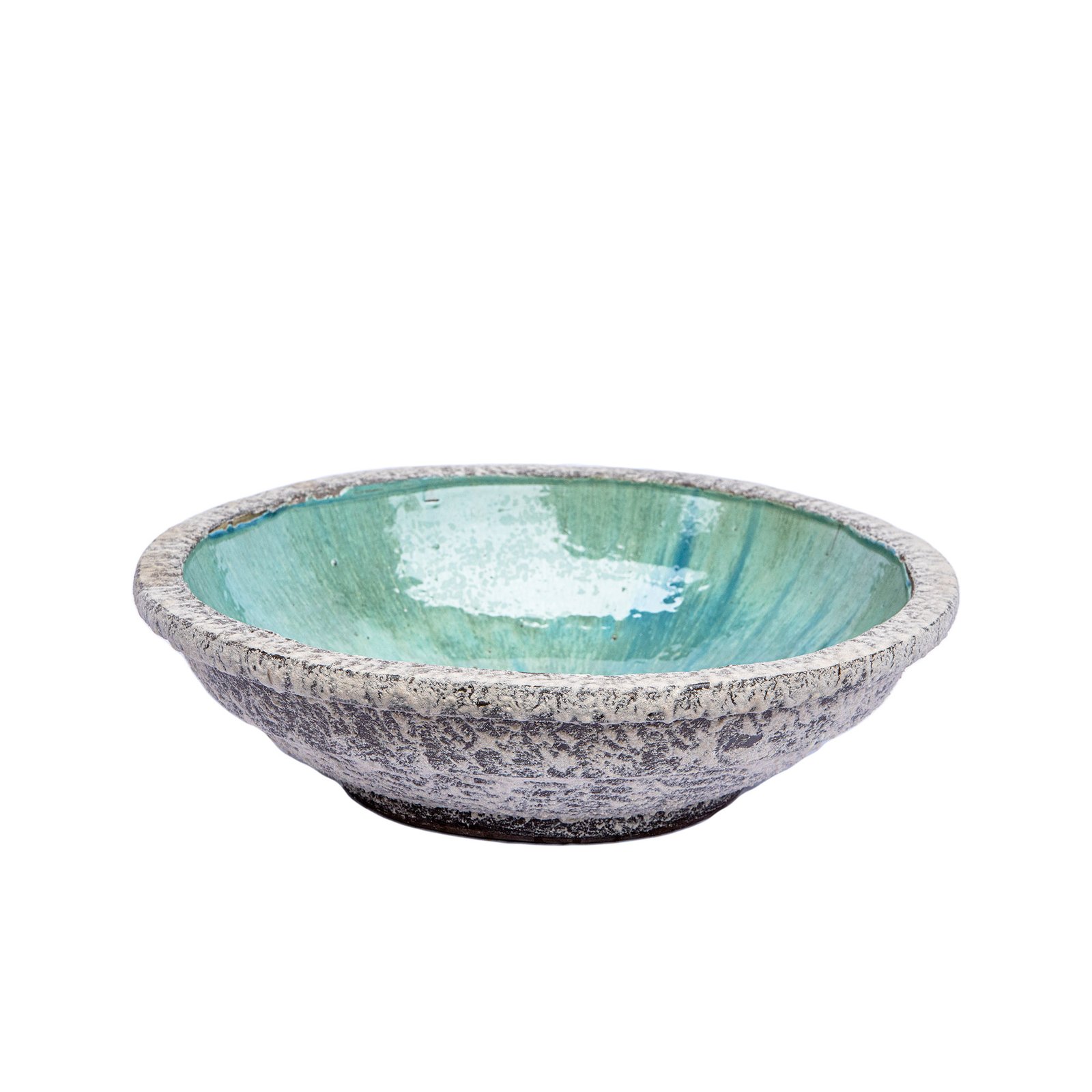 Große Schale, wunderbar geeignet als Blumenschale oder Obstschale. Innenglasur, außen strukturiert. Handfertigung. Jede Schale ist ein Einzelstück. Abweichungen, insbesondere bei der Glasur, möglich.